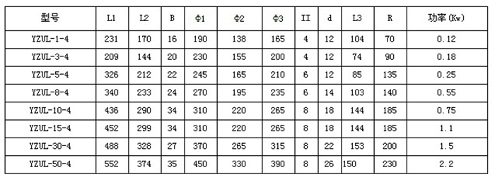 YZUL振動電機(jī)技術(shù)參數(shù)